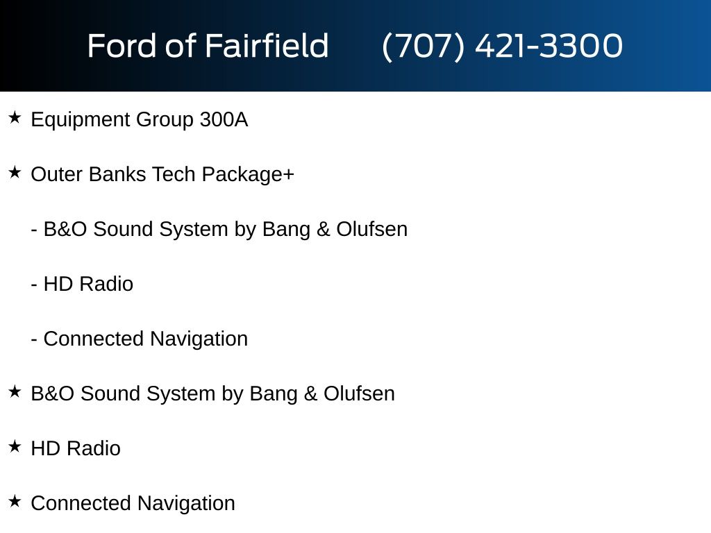 B&O Sound System by Bang & Olufsen, Connected Navigation, Equipment Group 300A, HD Radio, Outer Banks Tech Package+.