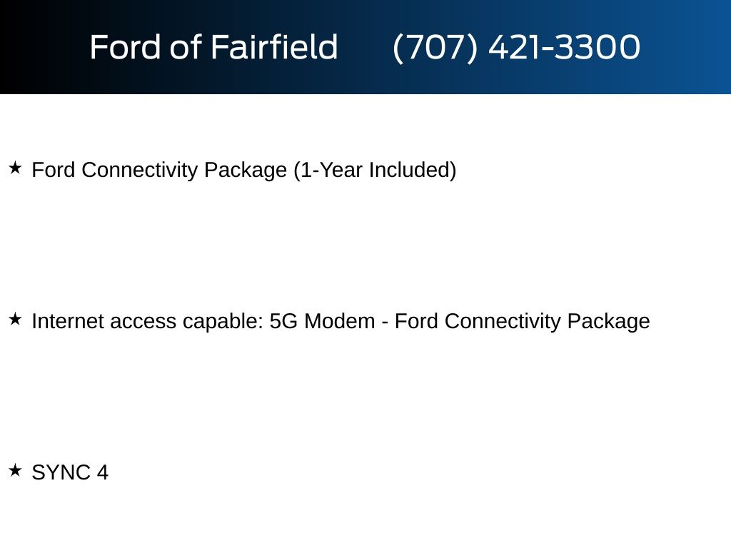 Ford Connectivity Package (1-Year Included), GVWR: 10,000 lb Payload Package, Internet access capable: 5G Modem - Ford Connectivity Package, SYNC 4.
