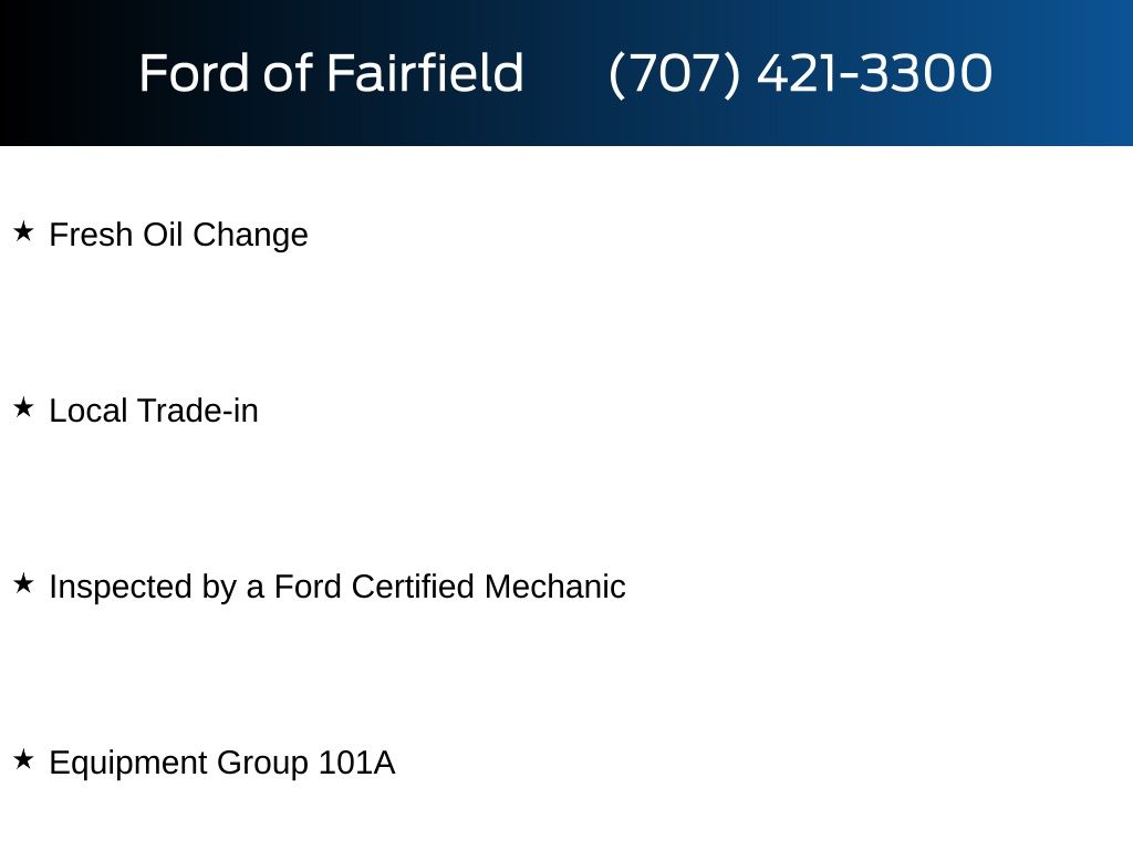 Fresh Oil Change, Local Trade-in, Inspected by a Ford Certified Mechanic, Equipment Group 101A.